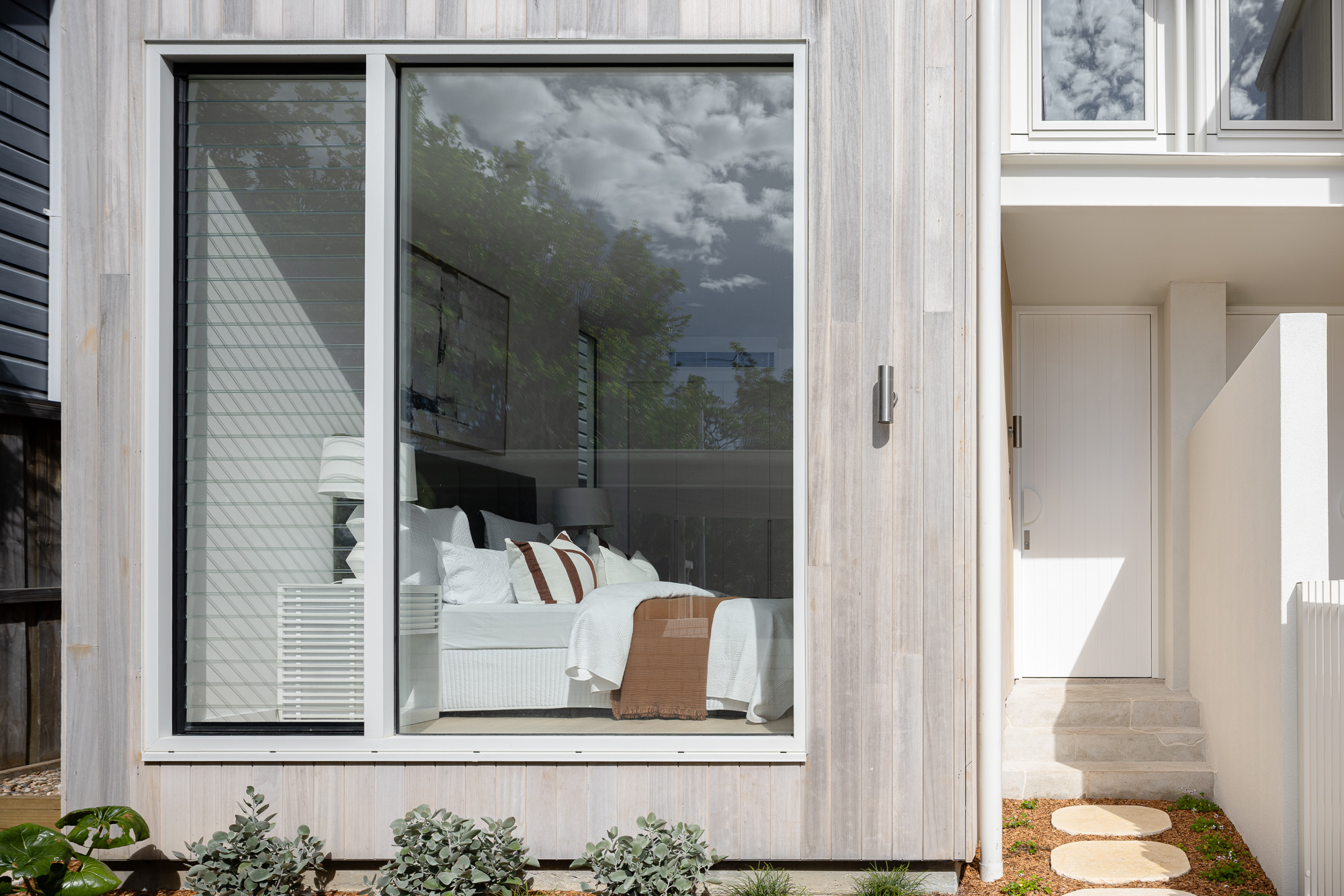 Externally, Trendplank 120×19 T&G Malvec cladding defined the façade, offering stability, durability and a refined, consistent finish. As a thermally modified timber, Malvec offers improved resistance to movement compared to other timber species, making the timber choice a reliable cladding solution for exterior applications. The Trendplank T&G installation system allowed for the vertical installation of random lengths, creating a clean expression with subtle shadow lines.