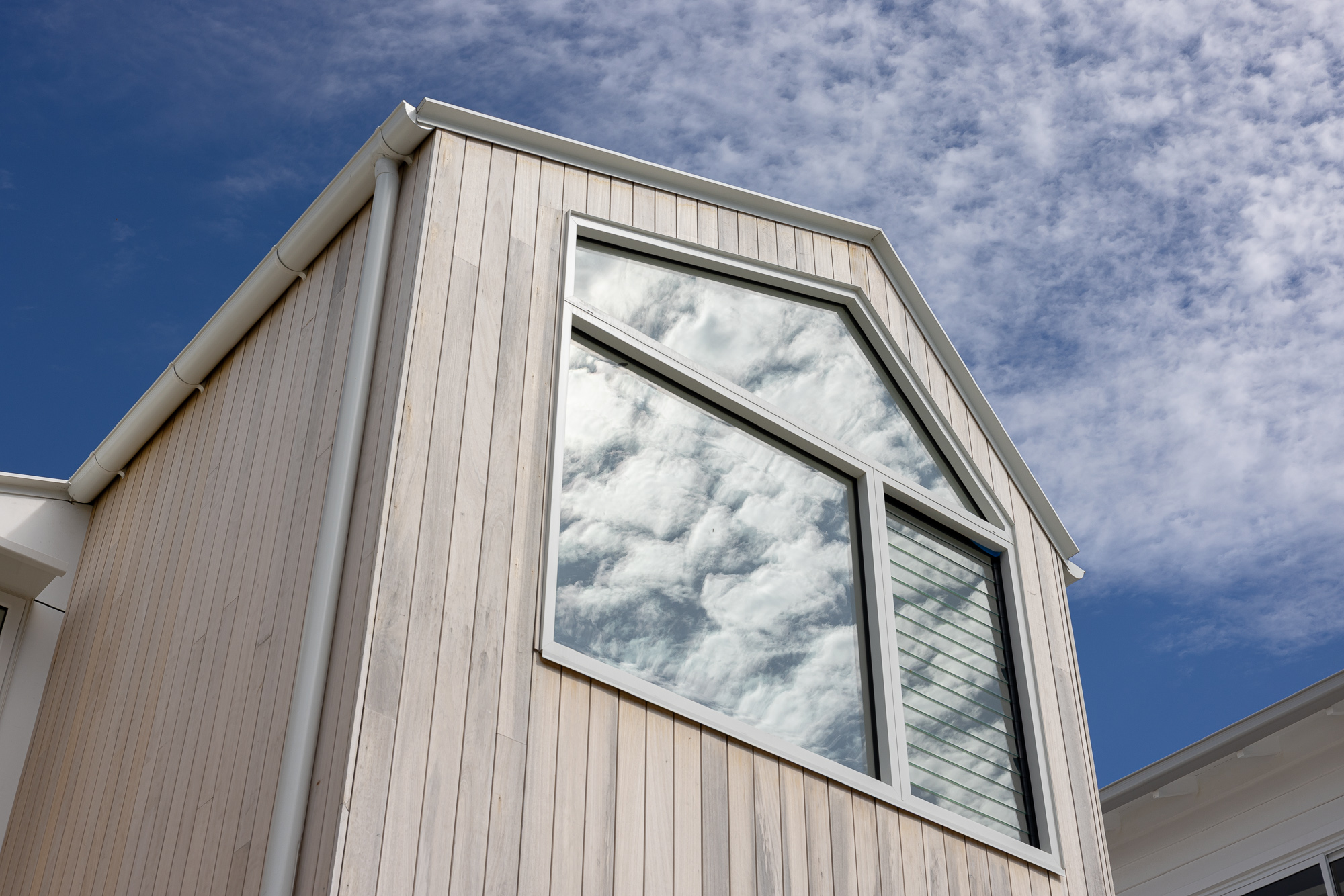 The cladding has been factory coated in Sioo:X Wood Protection System, a mineral-based treatment designed to support long-term performance and even weathering. Rather than maintaining the timbers original deep colour with regular maintenance and re-coating, the system allows the Malvec timber to gradually develop a soft, silver-grey patina over time.